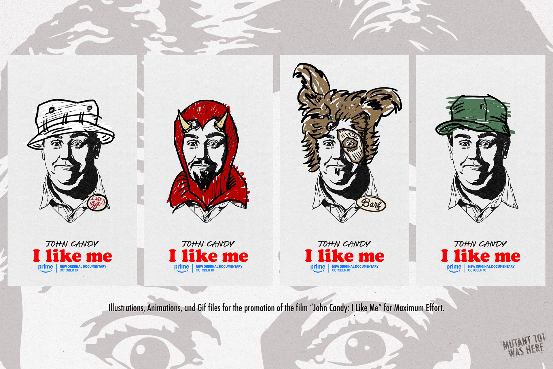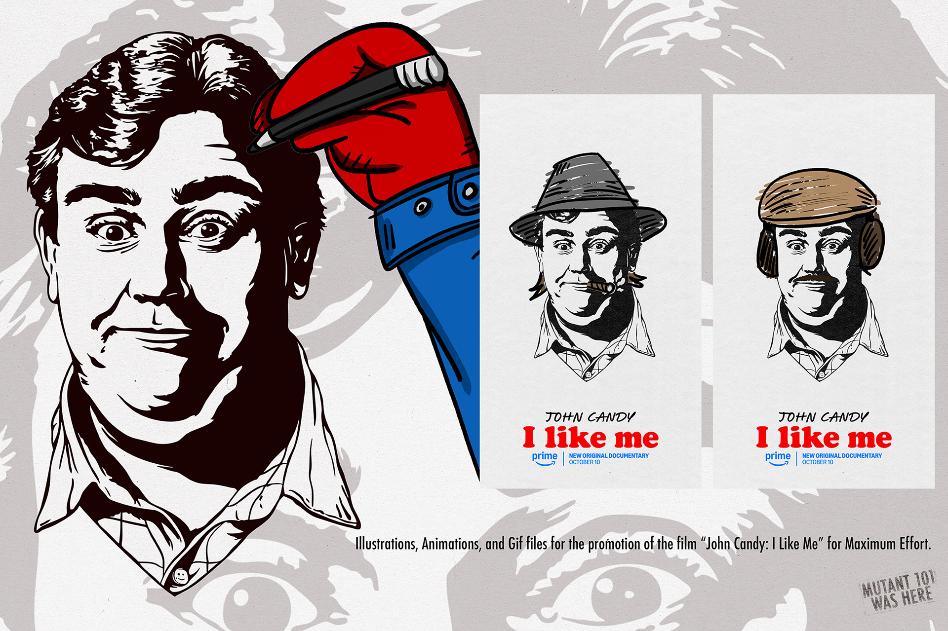 Poster design, animation, and illustration for "John Candy: I Like Me" Tour and the film "John Candy: I Like Me" commissioned by Maximum Effort.
