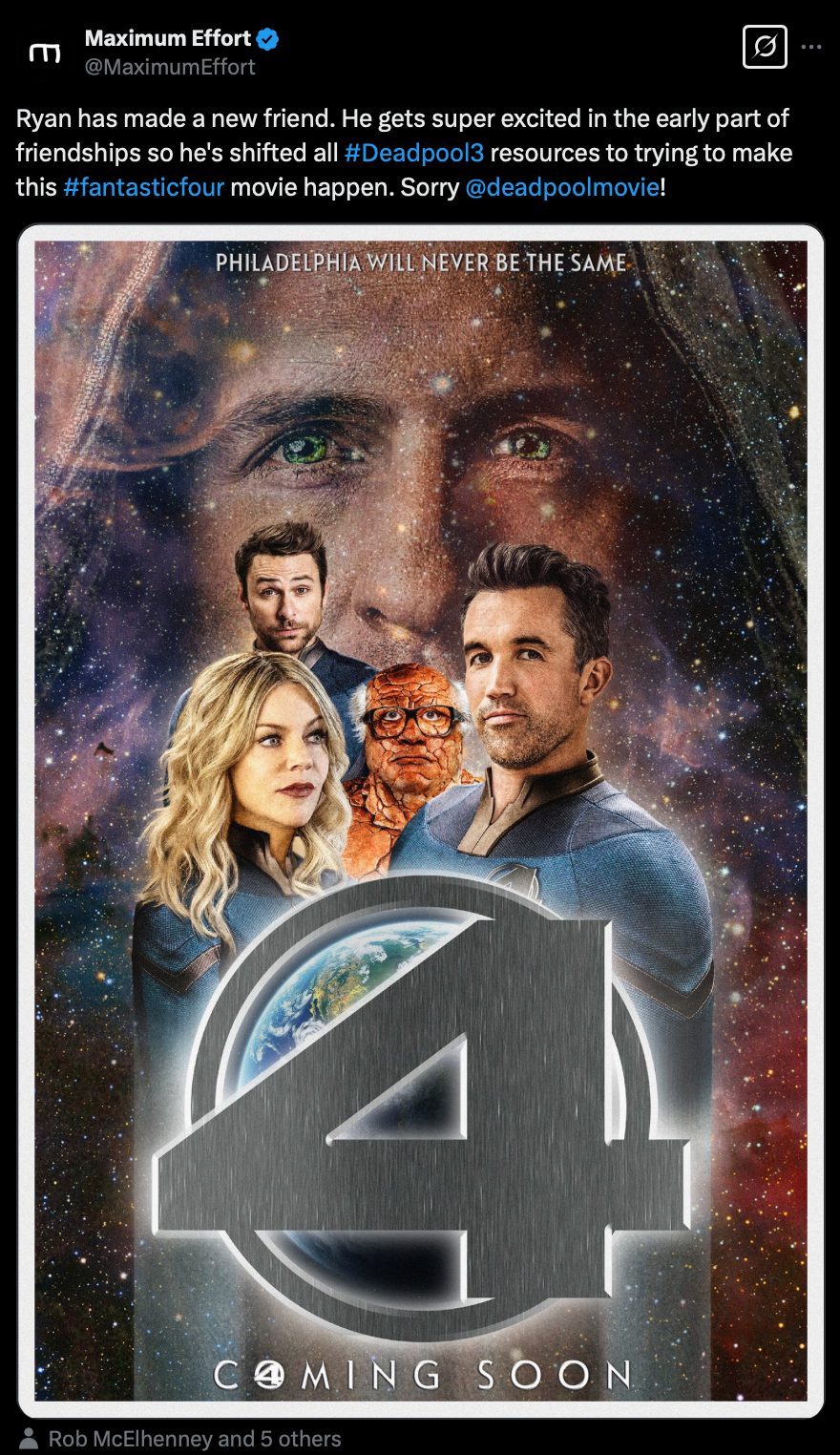 "Fantastic Four" Parody Poster Commissioned including Charlie Day, Glenn Howerton, Rob McElhenney, Kaitlin Olson, Danny DeVito